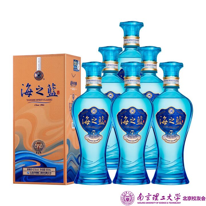 洋河海之蓝第七代绵柔浓香白酒 42度 480mL 6盒 整箱装